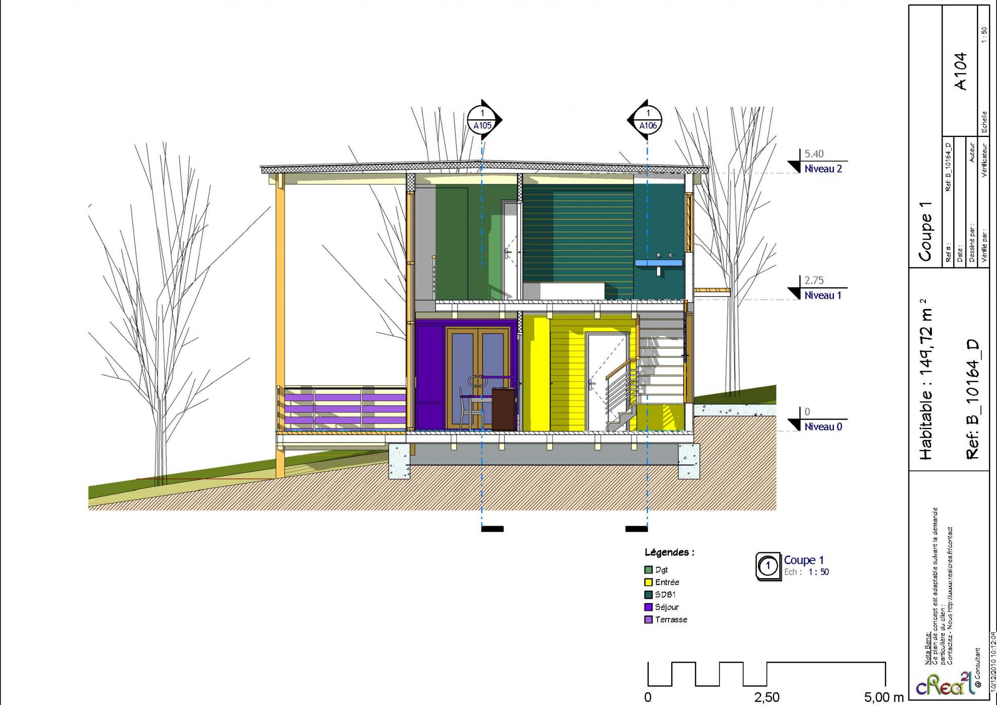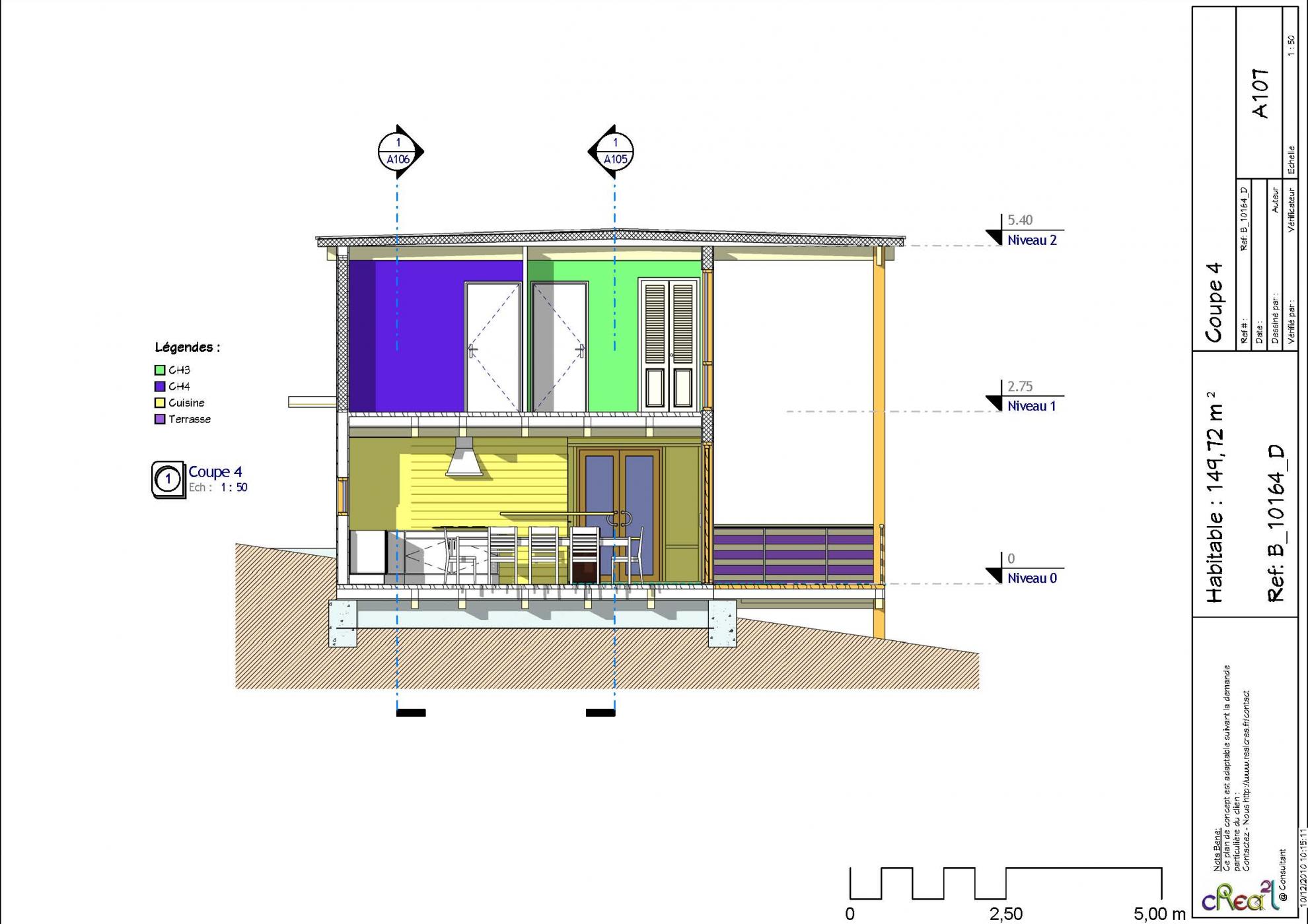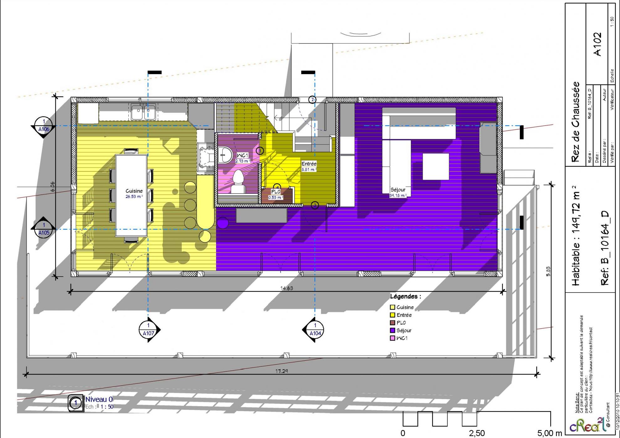 Plan Co_14183_D : Maison contemporaine R+1, 173 M², avec 15 Containers maritimes de 6 M, F5...