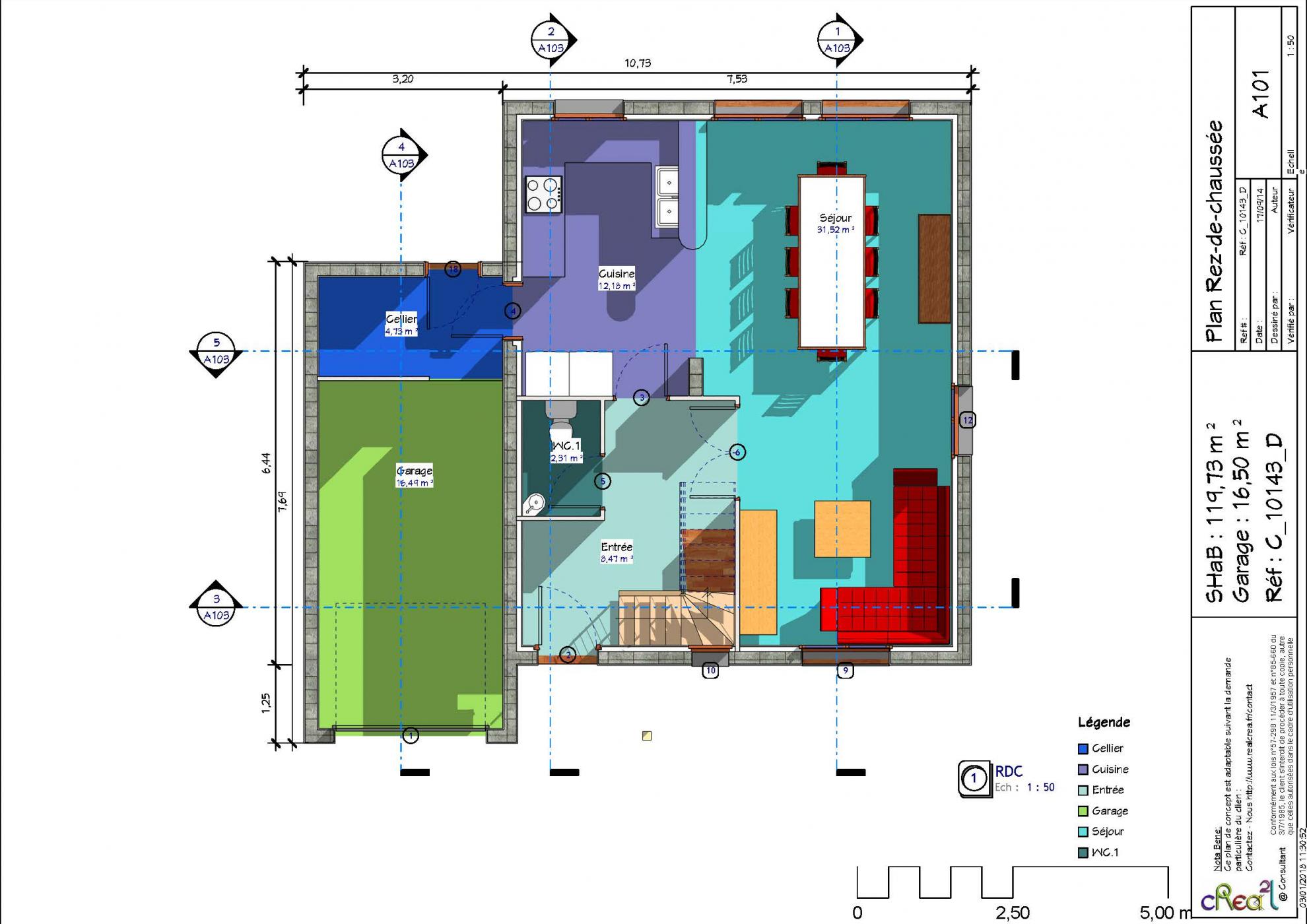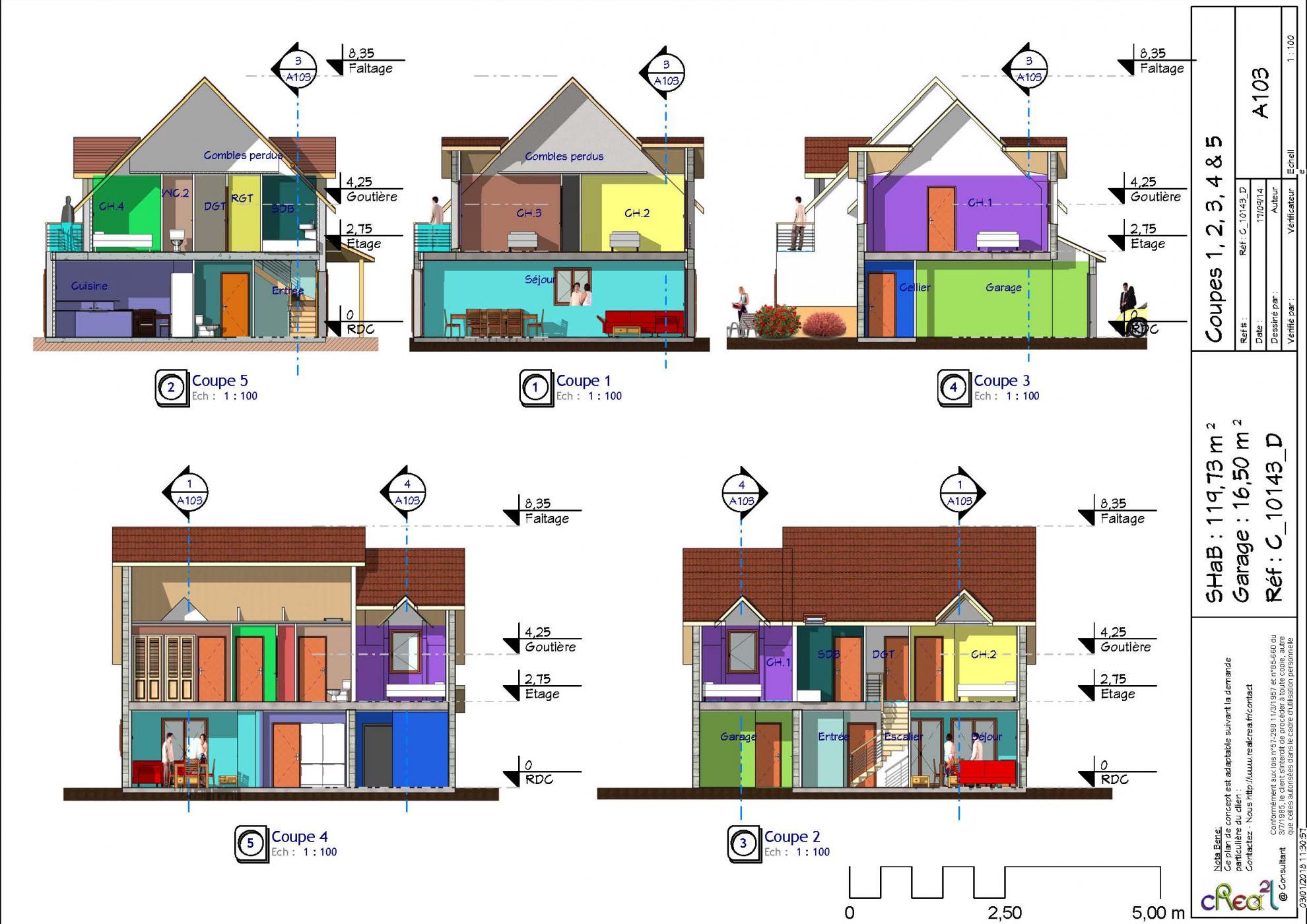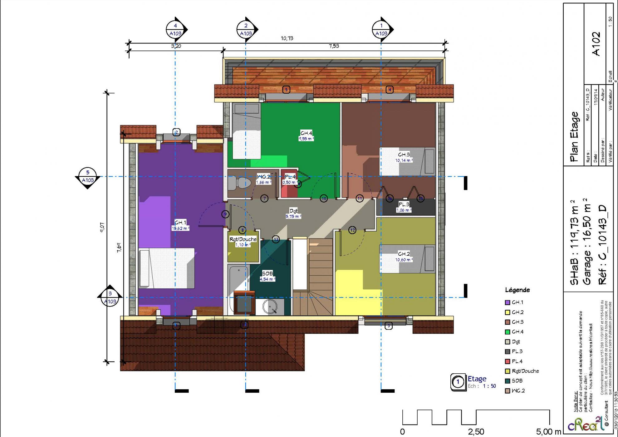 Plan C_10143_D : Maison R + Combles, 4 chambres ayant 120 m² habitables + garage intégré.