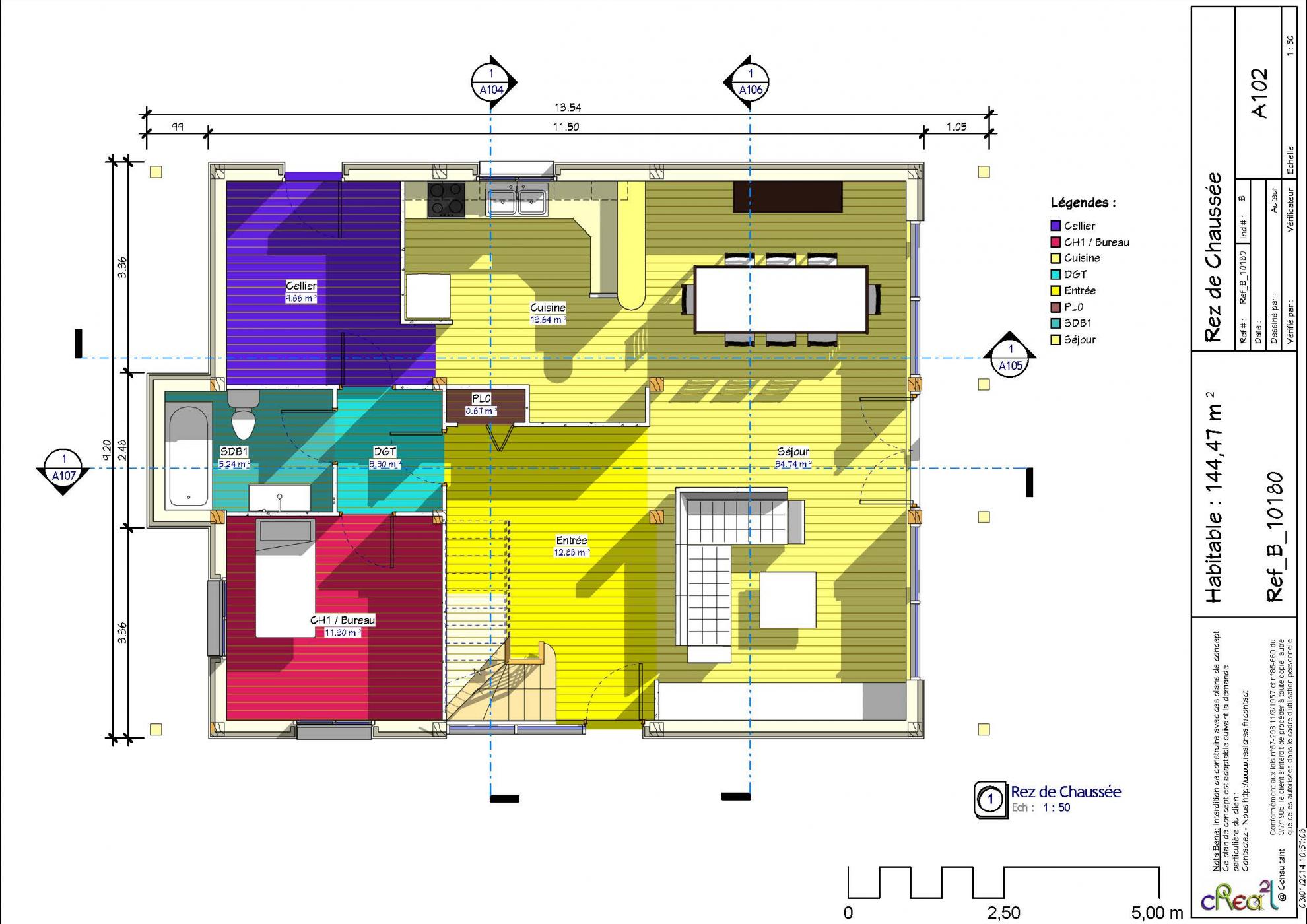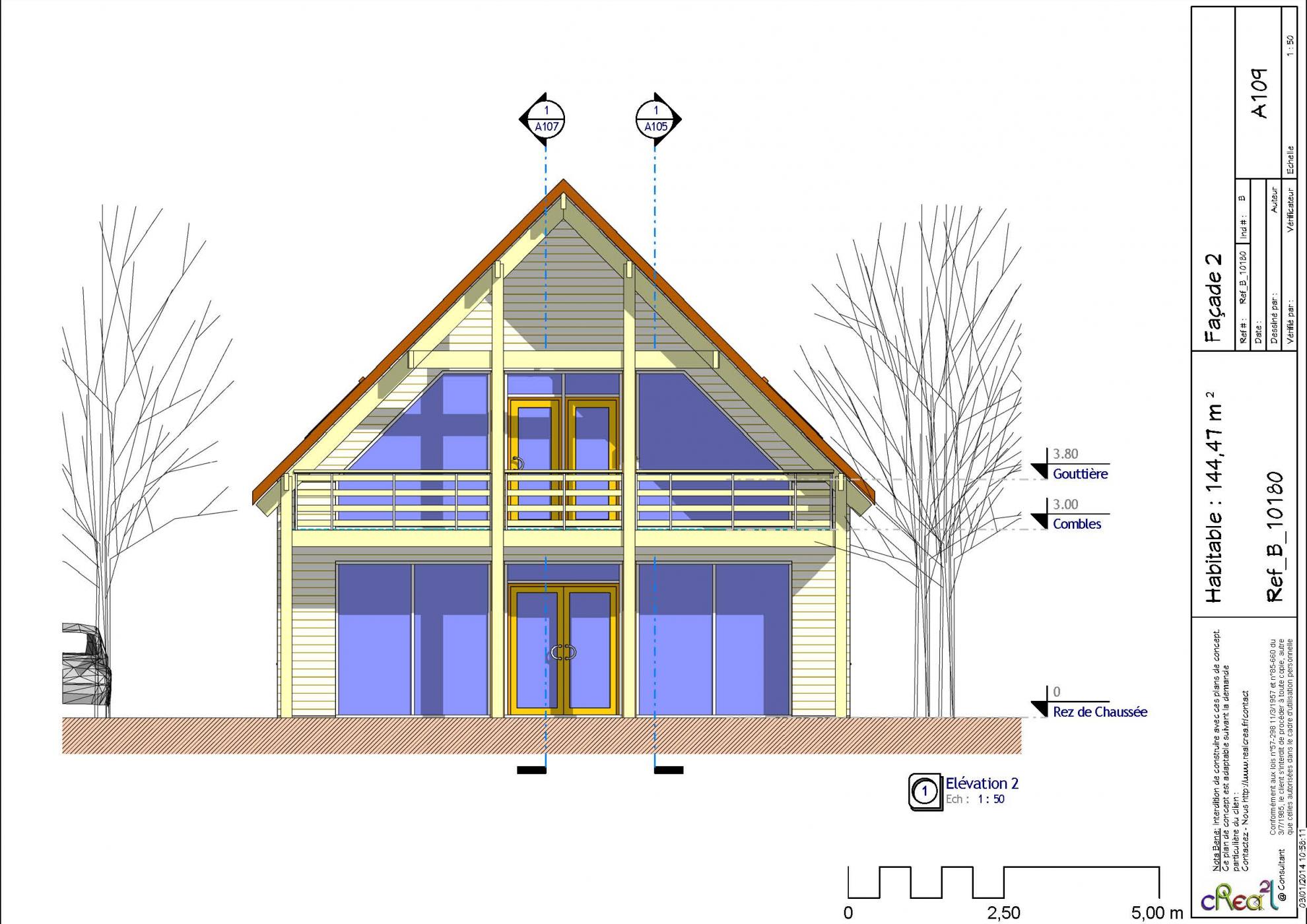 Plan B_10180 : Maison à ossature bois, R + Combles, 4 chambres ayant 154 m² habitables.