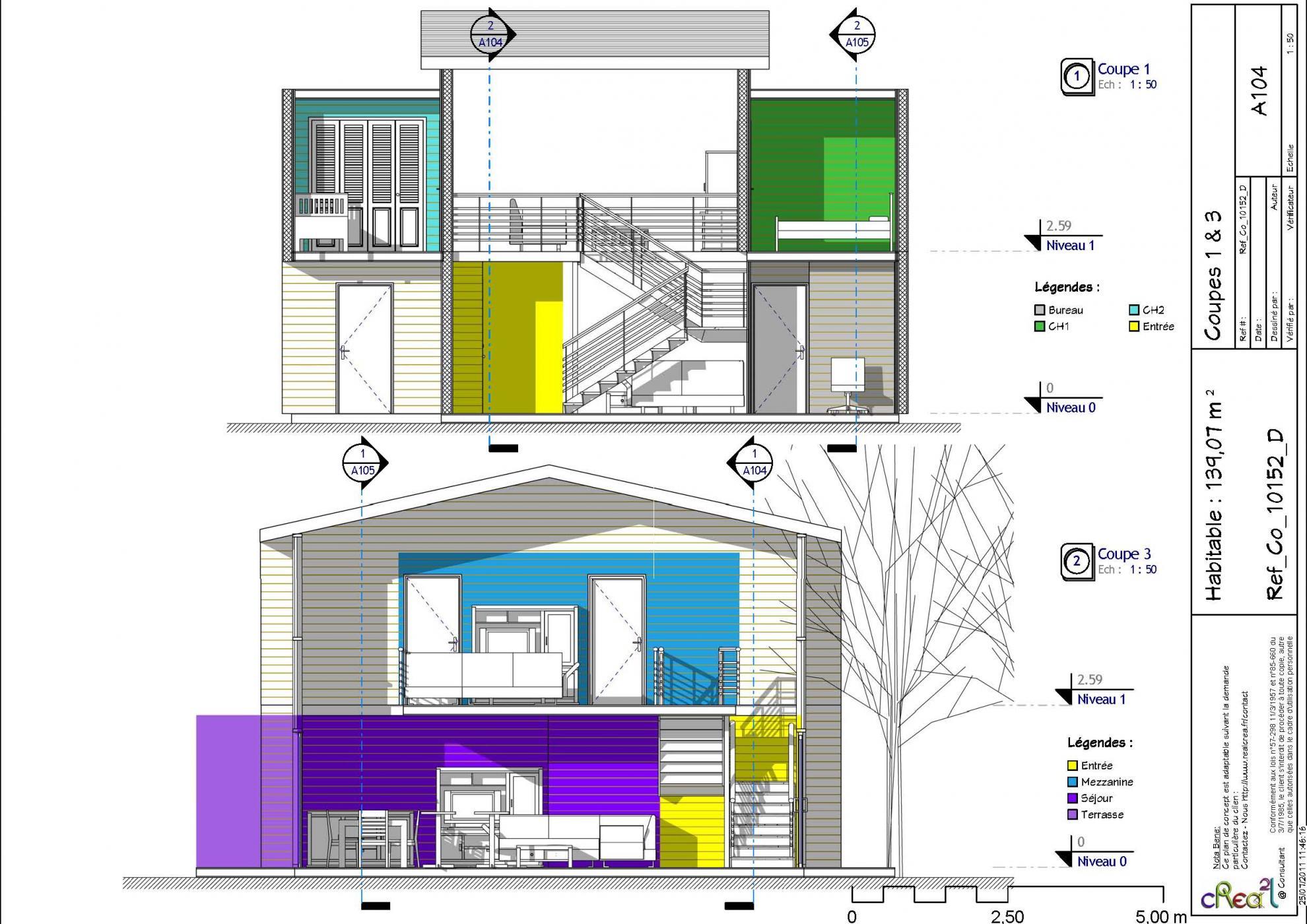 Plan Co_14183_D : Maison contemporaine R+1, 173 M², avec 15 Containers maritimes de 6 M, F5...