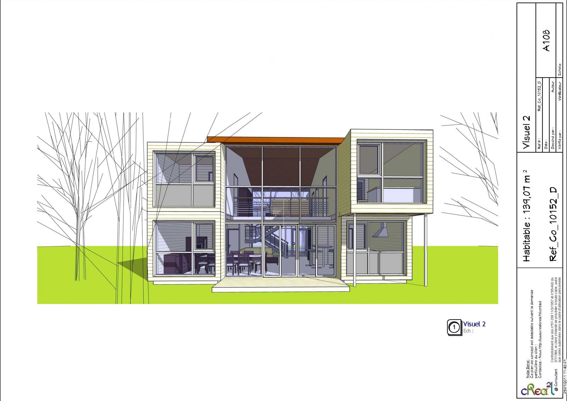 Plan Co_10152_D : Maison container R+1 ayant 139 m² habitable, 3 chambres et l'abri automobile intégré.