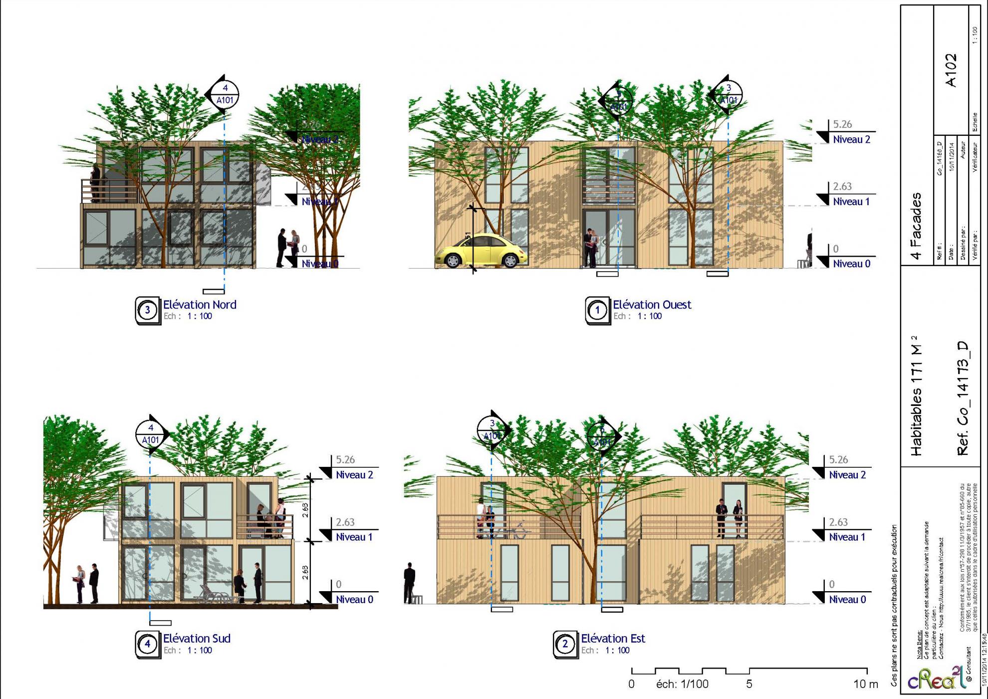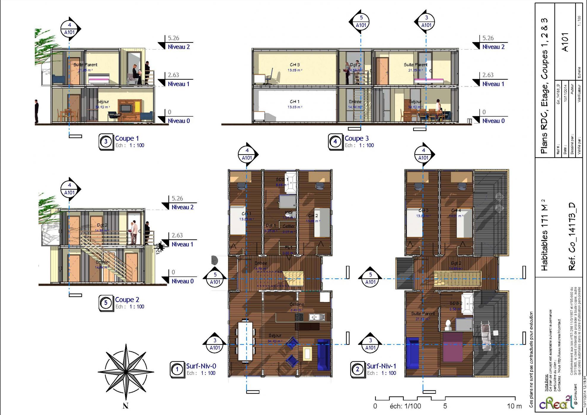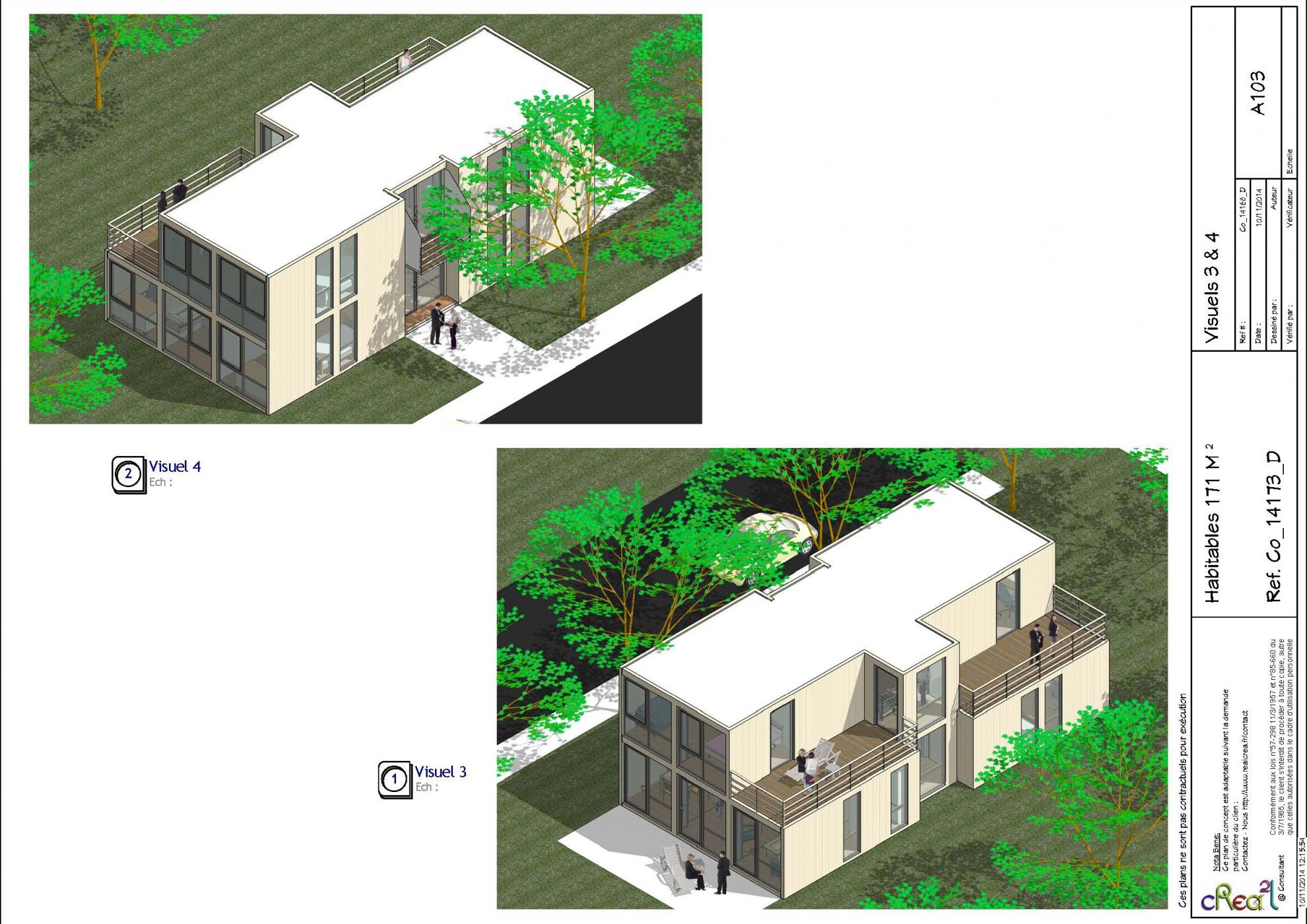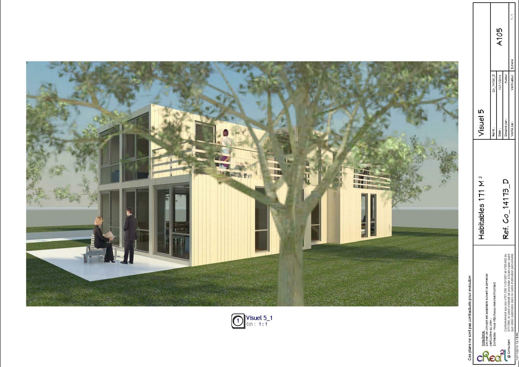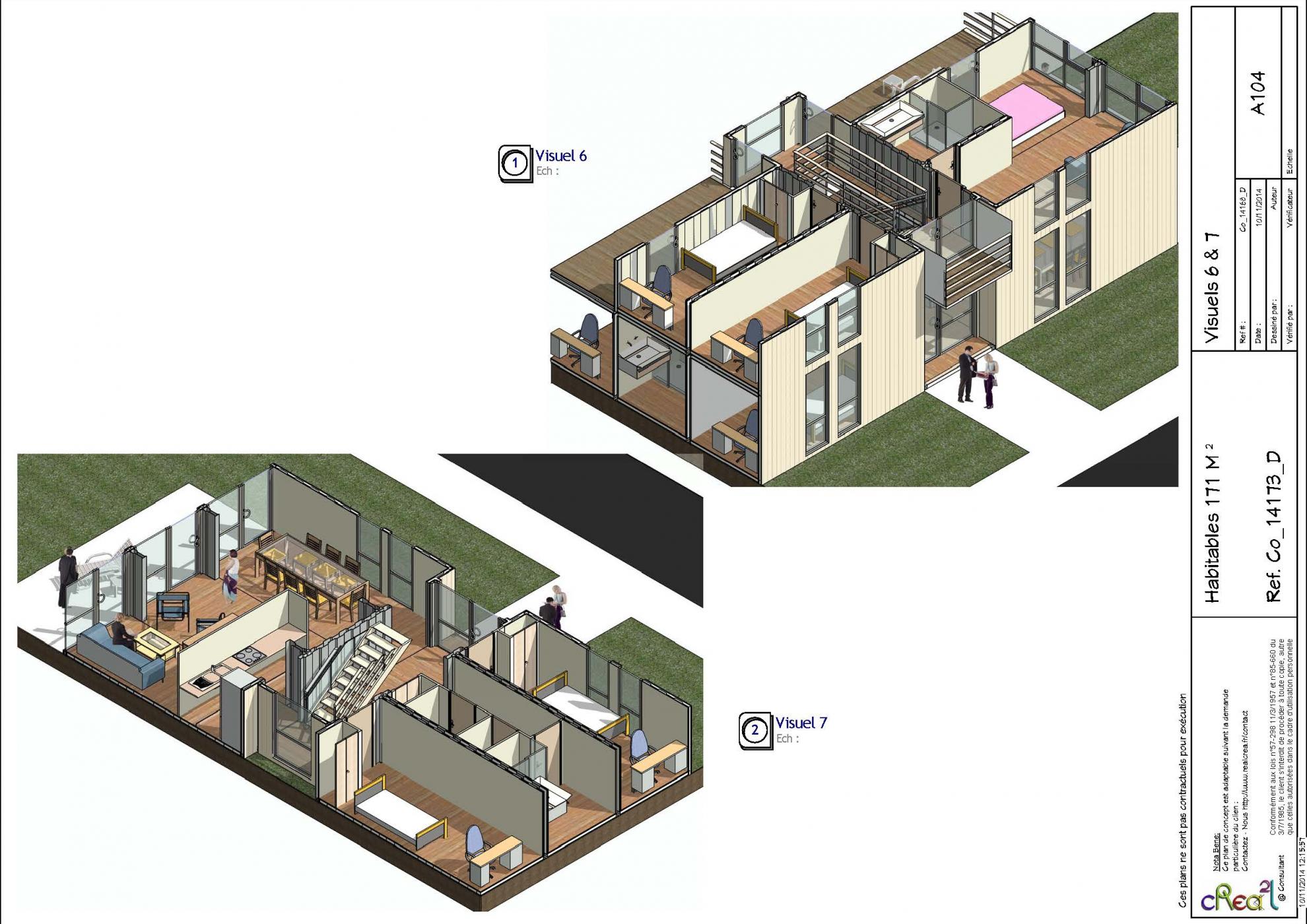 Plan Co_14173_D : Maison avec 12 Containers 6M, 171m², 1 Suite, 4 chambres